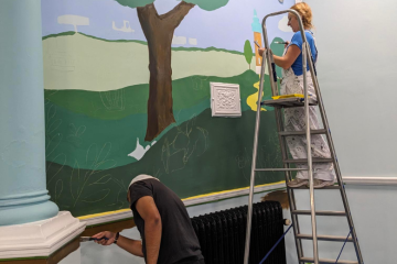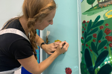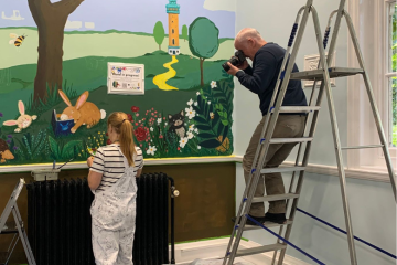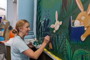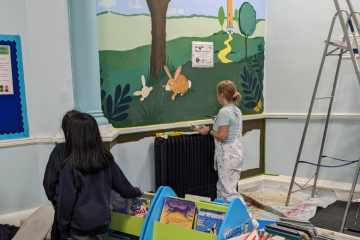 For our first project, the Loughborough Library Working Group considered various factors, including the full reopening of the children’s library following extensive refurbishment, and decided to start the year with an exciting wall art project. This innovative project embedded ‘eye-spy’ elements into the art to create an interactive element and incorporated a live installation so that the community could see the art come to life.