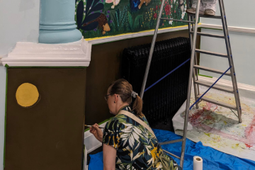 Having established a clear direction for the eye-spy wall art, our next step was to find a creative practitioner to bring the children’s ideas to life. After an extensive recruitment process*, the library working group appointed Jessi Illustrates to design and create our wall art. A location for the artwork was decided within the children’s library and after a few sketches that were revised together, the final design was signed off ready for the September installation.