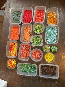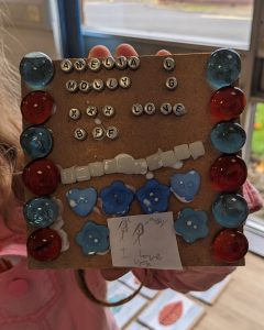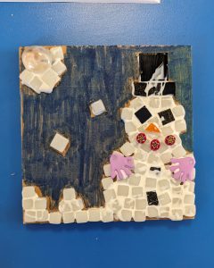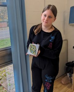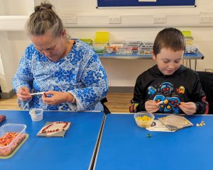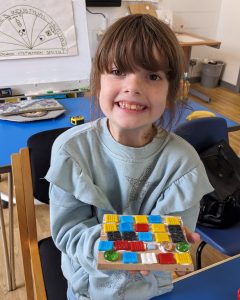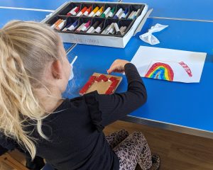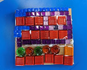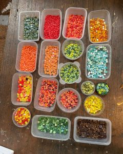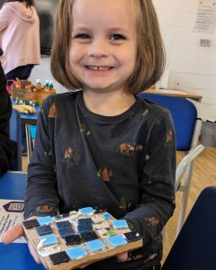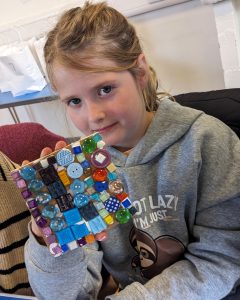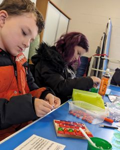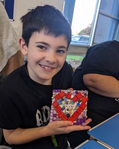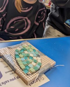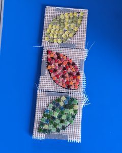 We worked with 10 community groups made up of children and families who had two workshops to create a leaf for the community mosaic and craft their own small mosaic to take home. These groups included open sessions for all, specialised SEND workshops, partnerships with our partners at Family Learning (LALS), Virtual School for children in care, Young Carers and Coalville CAN, and two schools: Belvoirdale Primary Cedar Class and Forest Way School.