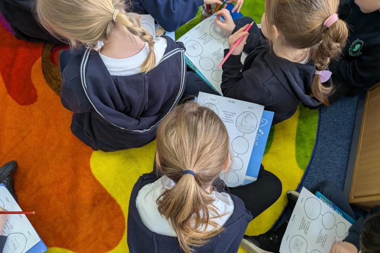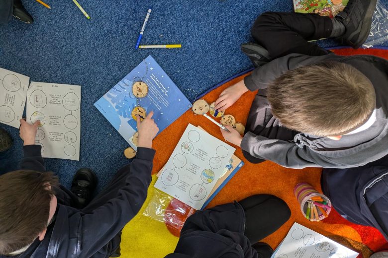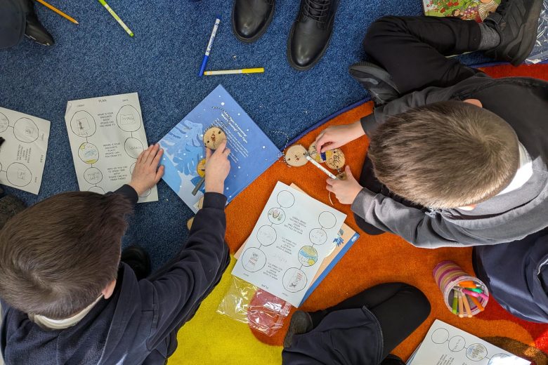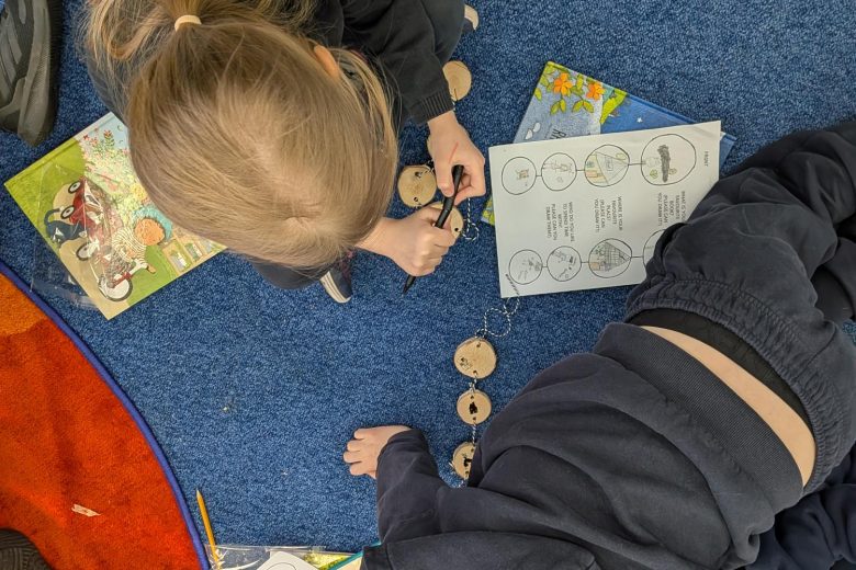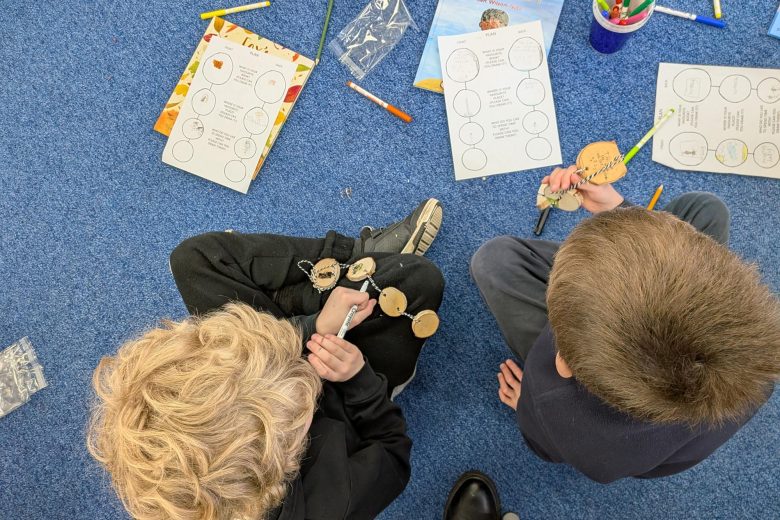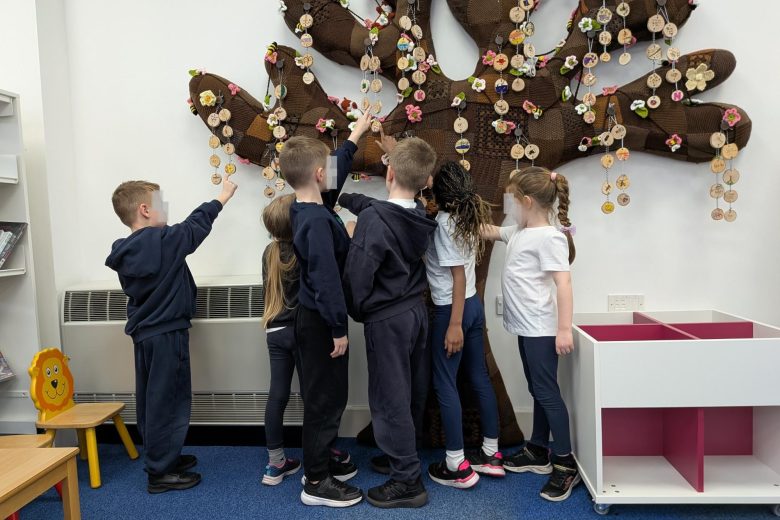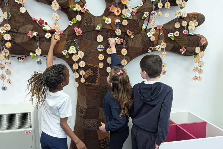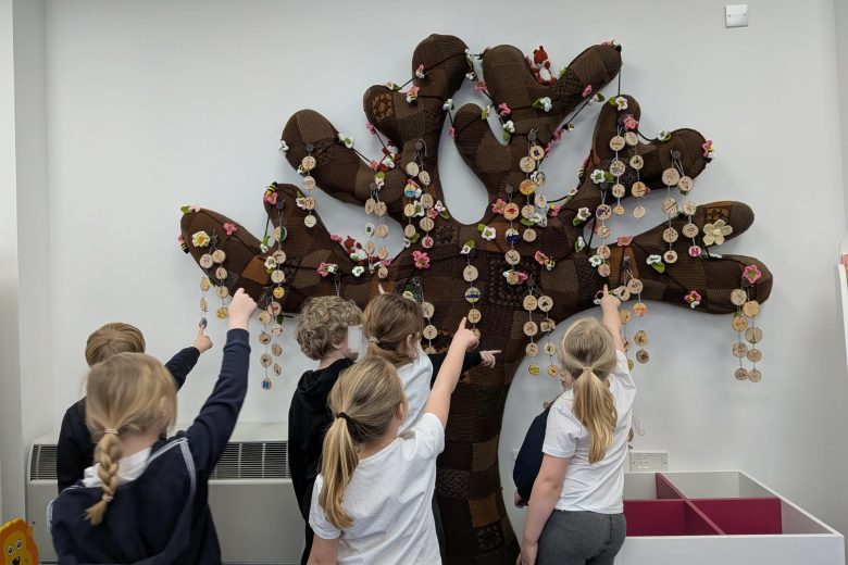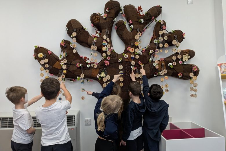 Creative Practitioner Katy Dynes collaborated with the Year Two pupils at Orchard Church of England Primary School to explore their favourite books, places, and people. Inspired by these shared stories, the children designed and crafted beautiful woodland garlands to celebrate their ideas. These garlands created a colourful and inspiration exhibition on our Community Art Tree.