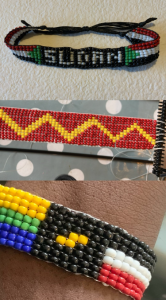 “Our culture and language give us a strong sense of identity. Jewellery is often a way that we share these things with others. If you have had to leave your own country because of war, disaster and danger, mementos of culture and tradition become even more important! Making bead body decorations and jewellery is a familiar traditional craft in Sudan and lots of cultures in Africa. It has been fun to make bead bracelets which remind young people of home, some with the colours of their flags. These can be worn as a symbol of where they are from and who they are.”