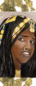 “The women in my culture are very beautiful! My mother used to wear beautiful gold jewellery in her hair, face and neck. We lived in a refugee camp in Sudan and she would still wear her gold nose ring. When I was a child I would sometimes touch it! If my mother was asleep and I wanted her to wake up I used to go and start to play with it and she would wake up and tell me that I was always fiddling with her things!”