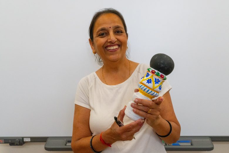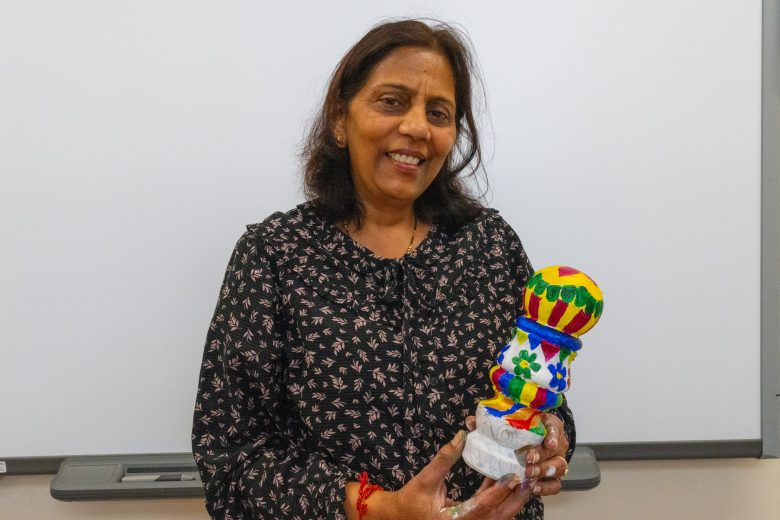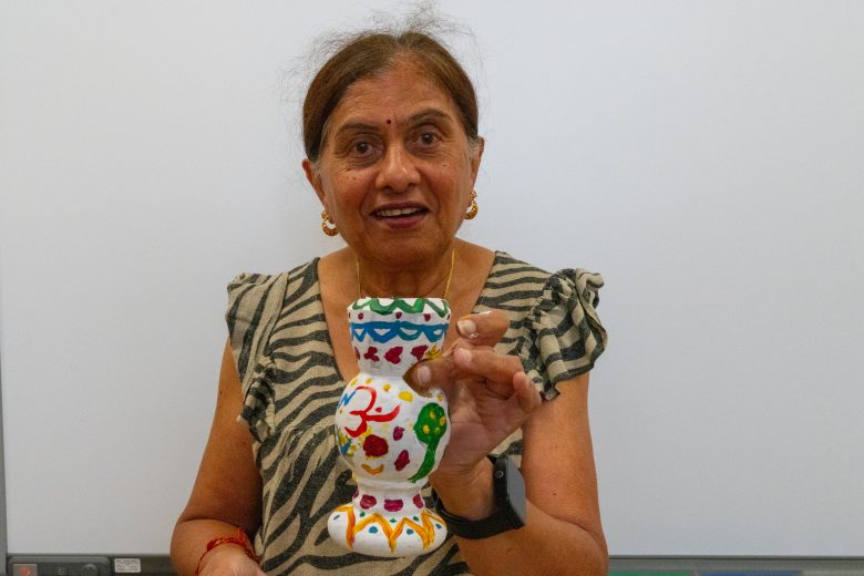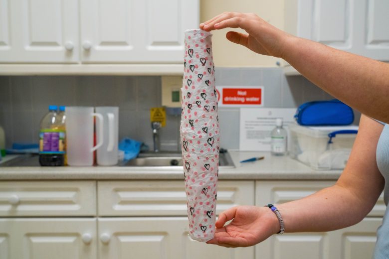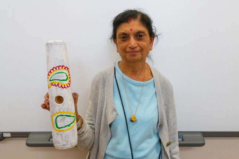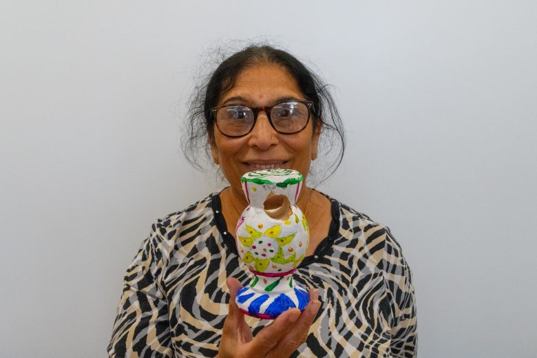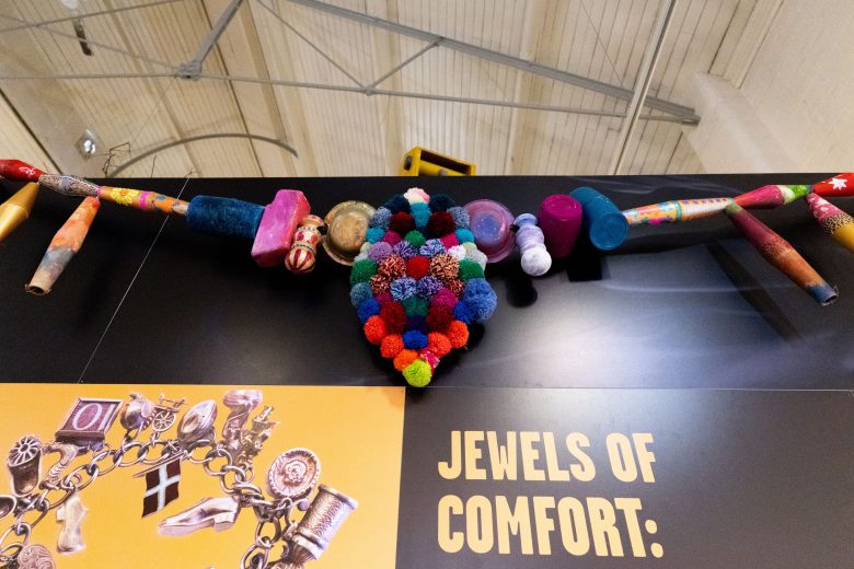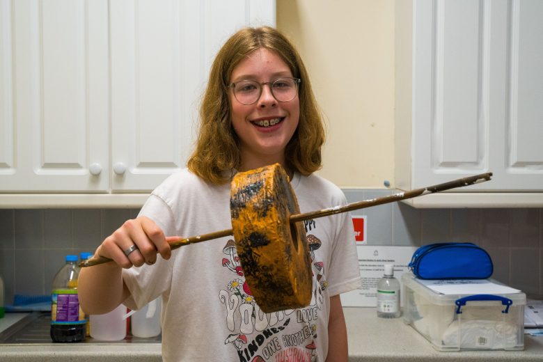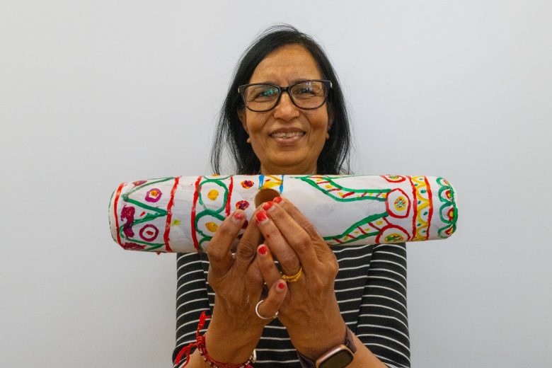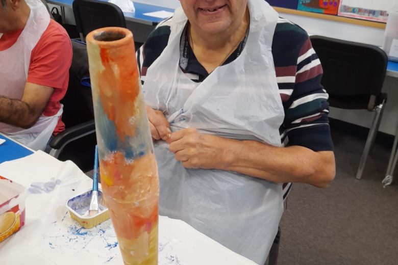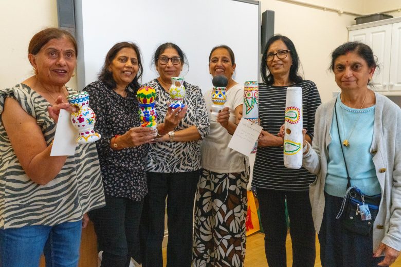 We commissioned artists Alison Mott and Liz Waddell to work with people from across Charnwood to make their own giant bead which would form part of a giant necklace.