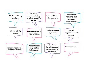 Leicestershire Shared Reading are a group that have proven to be extremely valuable to the communities in which they reside. A team of Reader Leader volunteers offer their time, experience, and passion to engage group members in the joys of reading!